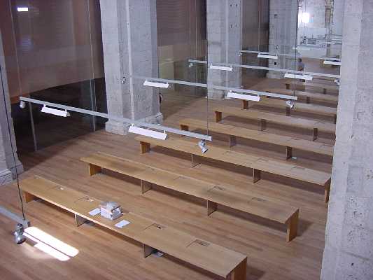 Nivel 0: se han recuperado diez capillas de 40 metros cuadrados cada una: cinco capillas a la derecha de la entrada por la puerta principal, cuatro de ellas destinadas a la biblioteca auxiliar del archivo y la quinta para la colocación de taquillas y cuadros eléctricos. Las cinco capillas situadas a la izquierda de la entrada principal, serán zona de trabajo y despachos. Esta planta principal mantiene la estructura que tuvo la antigua iglesia, con 800 metros cuadrados de superficie y 23 metros de altura, distribuidos en 400 metros cuadrados para sala de exposiciones y 400 metros cuadrados para sala de consultas con capacidad para 68 puestos.