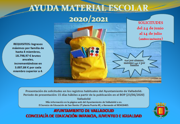 RESOLUCIÓN DE LA CONVOCATORIA PÚBLICA PARA LA CONCESIÓN DE AYUDAS A LAS FAMILIAS PARA LA ADQUISICIÓN DE MATERIAL ESCOLAR PARA LOS ALUMNOS QUE CURSEN ESTUDIOS DE SEGUNDO CICLO DE EDUCACIÓN INFANTIL, EDUCACIÓN PRIMARIA Y EDUCACIÓN SECUNDARIA OBLIGATORIA DURANTE EL CURSO 20/21.